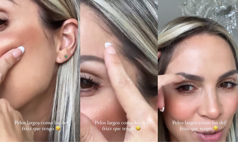 “Me he ‘mochado’ mitad de la patilla por acá, mira esta cómo me quedó. Me he arrancado un pedazo de pelo aquí. tengo la ceja maquillada pero realmente acá me dejé otro hueco”, dijo entre risas la colombiana mientras señalaba las zonas del accidente con la cuchilla de afeitar.