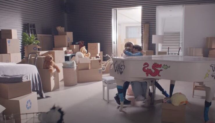 Finalmente, cada cosa se apaga, las persianas se vienen abajo y el clip culmina con un abrazo entre la madre y sus hijos que los une como una nueva etapa de la familia y lo que vendrá después.