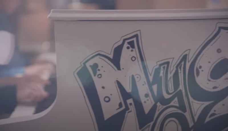 Seguidamente el piano blanco, que en general es un color que transmite calma, serenidad, sensibilidad, ausencia de impulsividad, entendimiento y capacidad para reflexionar, tal como reza la letra de Acróstico. A un costado aparecen las iniciales de Milan y Sasha acompañados de un dragón rojo que se extiende mirando al este.