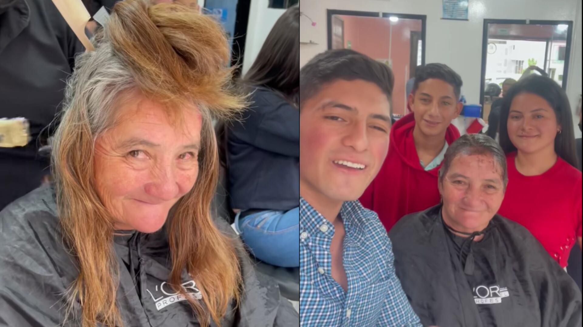 “Le queremos hacer una transformación para que quede más linda de lo que es”, fueron las palabras de Yonier, quien junto a Diana y Julián llevaron a su mamita al estilista.