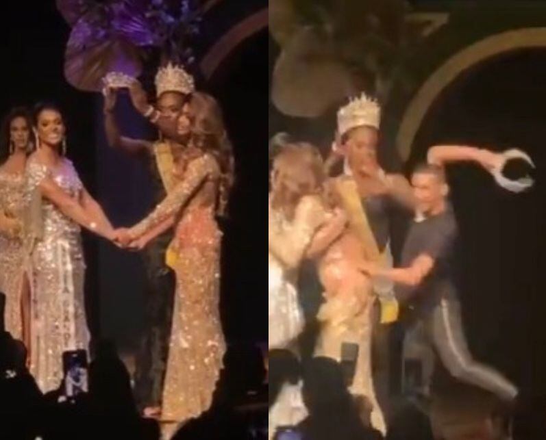 Tras anunciarse a la ganadora, Oliveira subió al escenario, tomó la corona y la lanzó al suelo para destruirla tras la derrota de su esposa y ante la mirada atónita de los participantes.