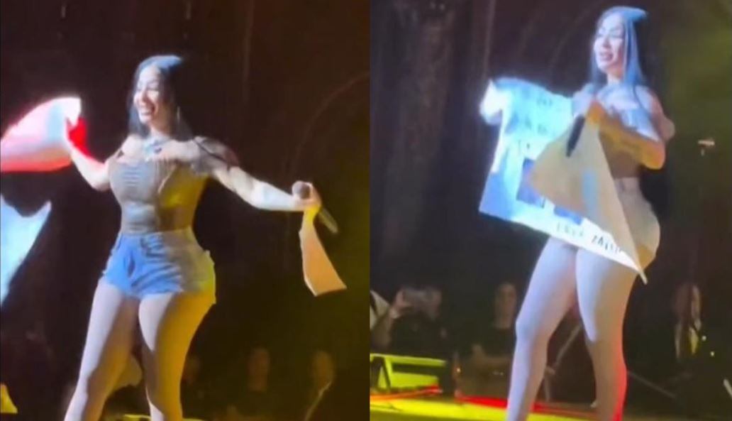 La cantante dominicana se hizo viral luego de que agarrara la pancarta que decía “real hasta la muerte y te volviste nah” frase que ella comprendió iba dirigida a Anuel AA, y que ella utiliza en su canción de ‘Narcisista’. Antes de que la cantante destrozara el papel, ella lo exhibió ante su público, el que posteriormente la aplaudió cuando rompió el letrero.