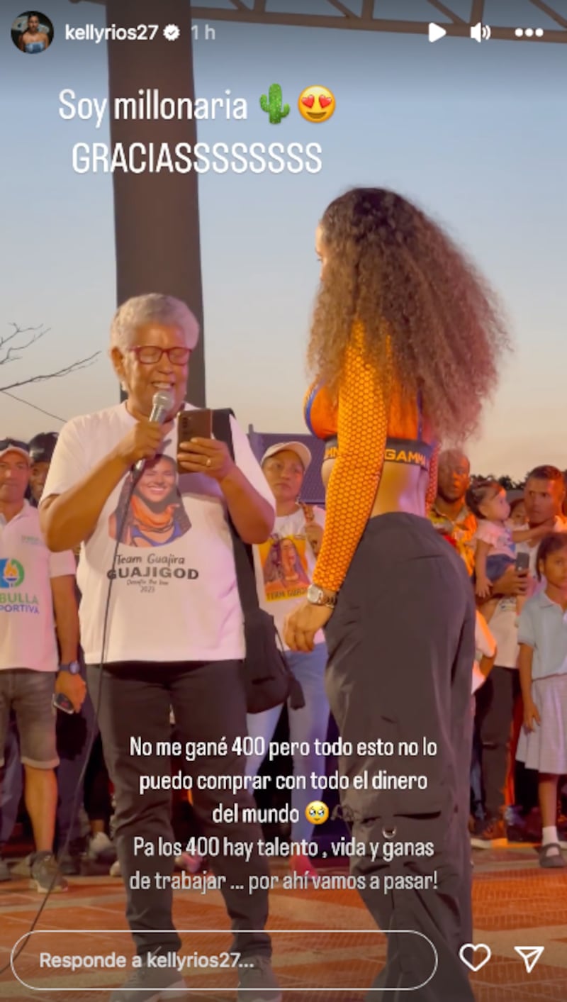 “No me gané 400 millones, pero todo esto no lo puedo comparar ni con todo el dinero del mundo. Pa’ los 400 hay vida, talento y ganas de trabajar, por ahí vamos a pasar”, afirmó la excompetidora del programa del Canal Caracol.