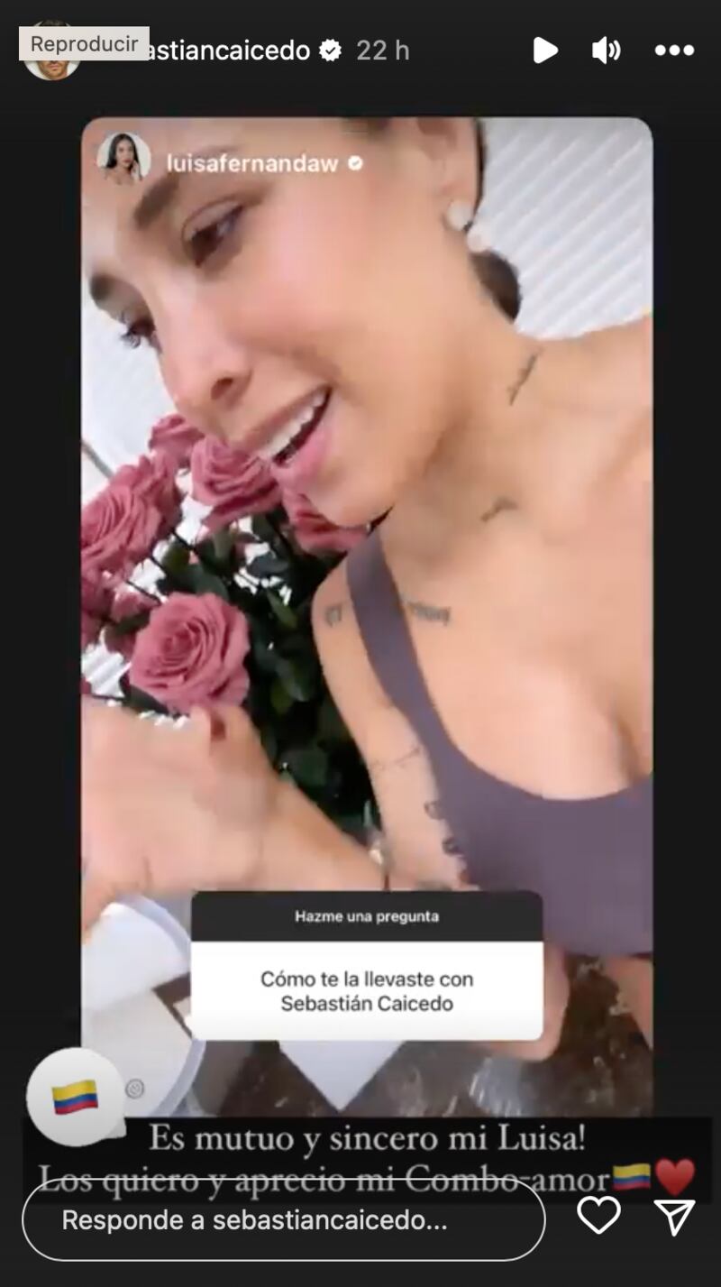 Sebastián Martínez no dudó en contestar lo que Luisa le envió, pues compartió: “es mutuo y sincero mi Luisa, los quiero y aprecio mi combo amor”, terminó diciendo el actor de Amores que Engañan, en sus redes sociales.