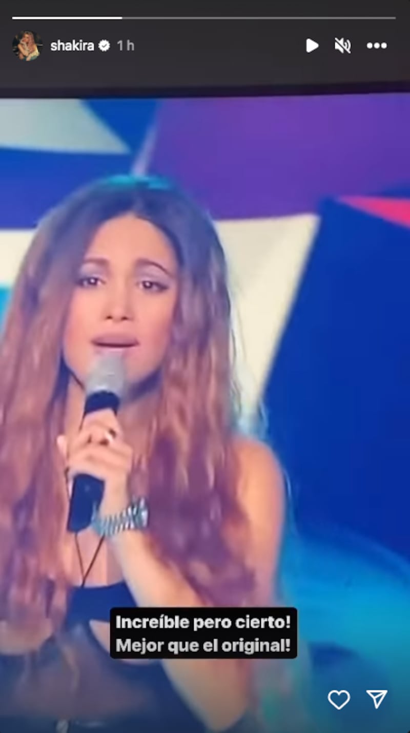 Fue tanto el alcance de la presentación que incluso llegó a la original. A través de sus historias de Instagram, Shakira publicó un fragmento de la presentación de su doble para llenarla de elogios. “Increíble, pero cierto! Mejor que el original!”.