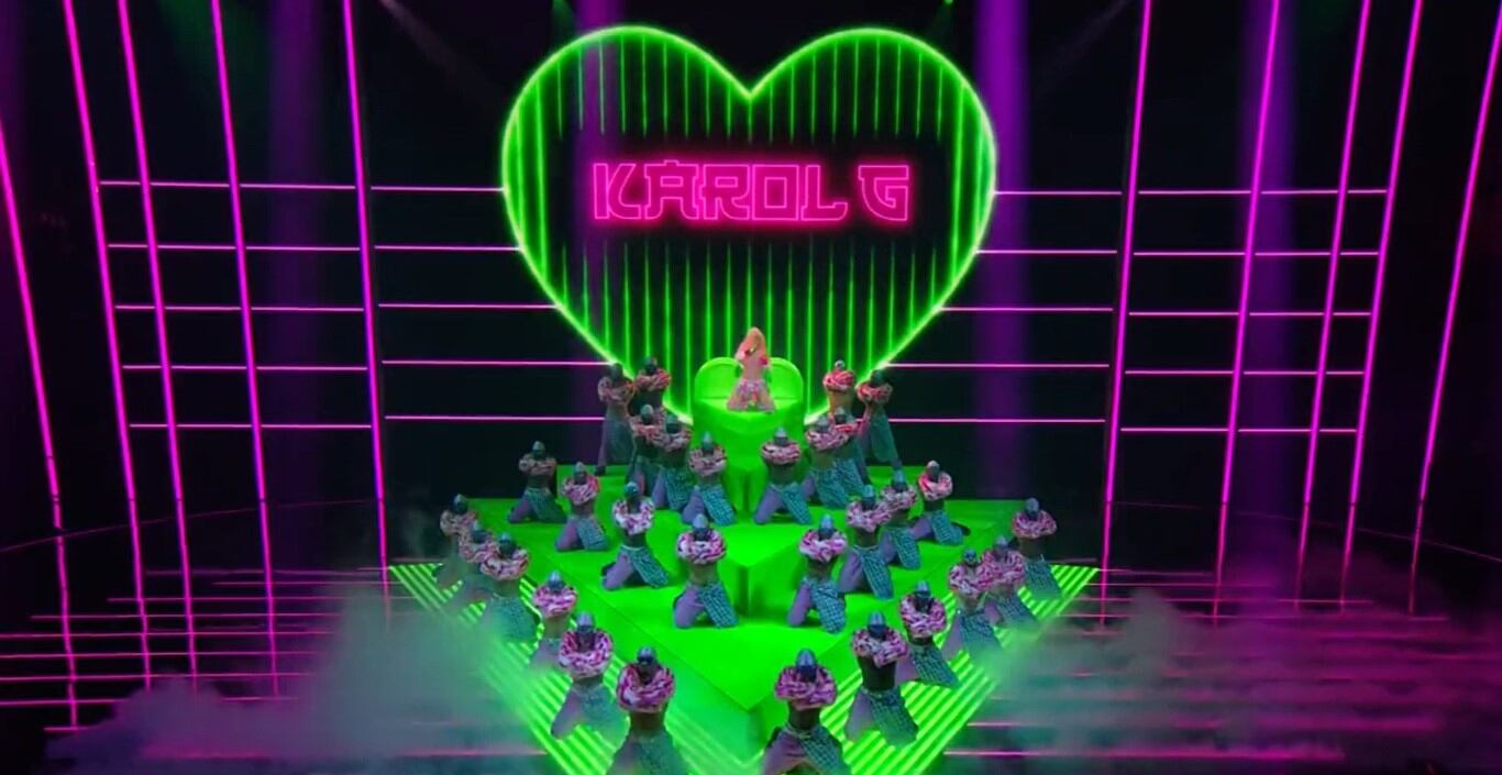 La presentación de Karol G ha sido una de las mejores de la premiación por cada detalle incluido, y en el que los colores del escenario y su vestimenta han llamado la atención de todos. La paisa en la actualidad derrocha el color rosado, el cual mezcló con el verde que para nadie es un secreto es la tonalidad con la que se representa su pareja Feid.