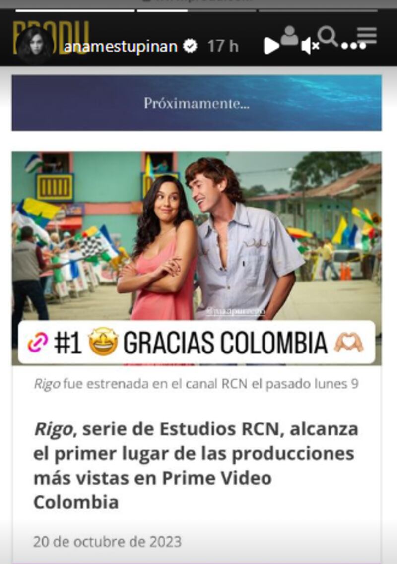 Para conocimiento de algunos, ‘Rigo’ no solo está siendo transmitida por televisión nacional en el horario de las 8:00pm, sino que a medida que un capítulo finaliza en televisión nacional, también puede ser visto por la plataforma de Streaming Amazon Prime Video, y fue en dicha plataforma donde lograron ocupar el número uno en audiencia, en comparación con la audiencia recibida de manera tradicional por televisión.