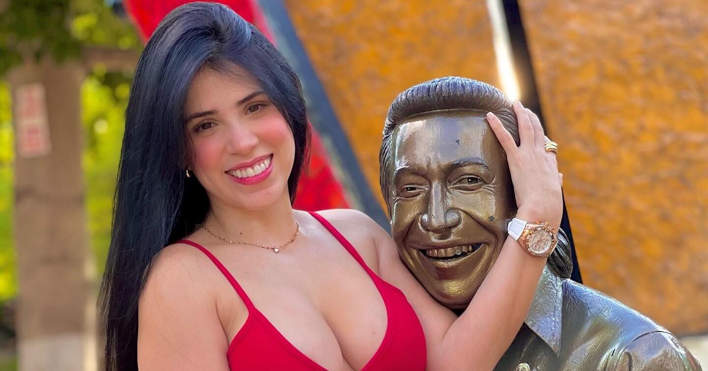 Recientemente la actriz, escritora y politóloga, se mostró de visita ante una de las estatuas más queridas en Colombia como lo es la del ‘Cacique de La Junta’ Diomedes Díaz, y aprovechando el momento se sentó en sus piernas.