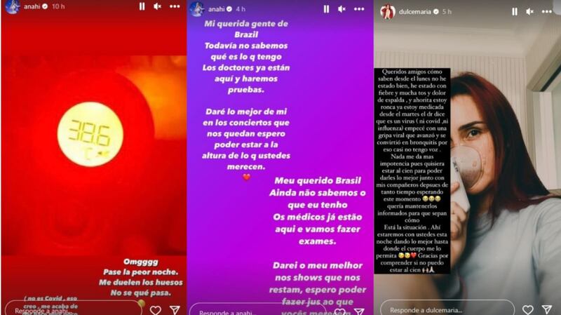 No obstante, ella no ha sido la única enferma, pues Dulce María también manifestó tener algunos síntomas de un virus.