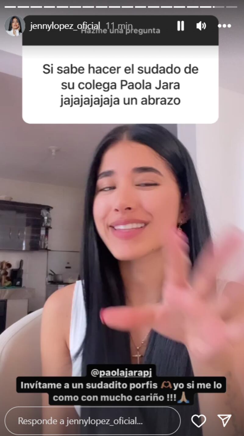 Mientras conversaba con quienes la siguen, López decidió responder a la caja de respuestas de su cuenta, en la que muchos le preguntaron su opinión sobre el famoso sudado que le preparó la intérprete de ‘Mala Mujer’ a Jessi hace ya varios meses:
