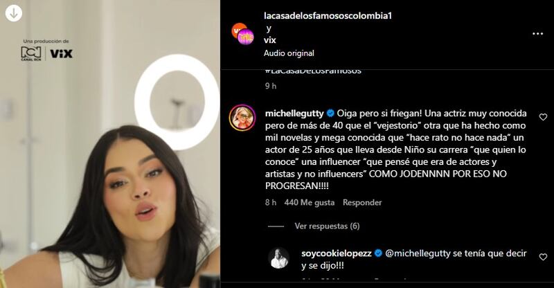 “Oiga, pero si friegan. Una actriz muy conocida, pero de más de 40 que el ‘vejestorio’ otra que ha hecho como mil novelas y mega conocida que ‘hace rato no hace nada’ un actor de 25 años que lleva desde niño su carrera ‘que quien lo conoce’ una influencer ‘que pensé que era de actores y artistas y no influencers’ como jodennnn por eso no progresan”, escribió la actriz y cantante Michelle Gutty.