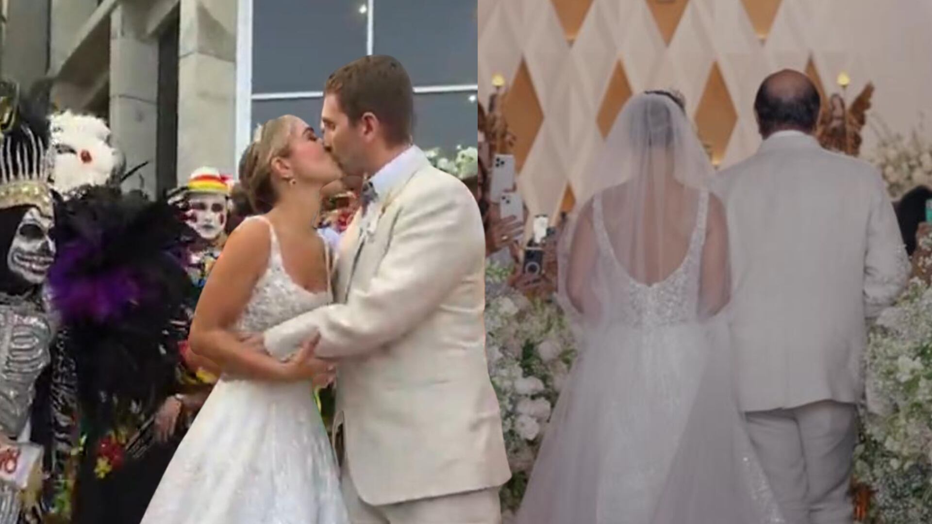 Valeria y su esposo, Roberto Cepeda, se casaron en la Parroquia Perpetuo Socorro, uno de los sitios más soñados de las parejas, para unir sus vidas. Además, como buena exreina del carnaval al salir de la iglesia, la pareja recién casada fue recibida por un mini carnaval.