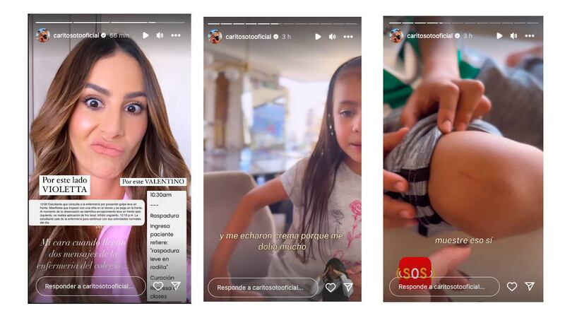 Es por ello, que Carolina Soto logró preocupar a sus seguidores al dar a conocer que mientras estaba a la espera de la llegada de sus hijos que se encontraban en el colegio, recibió dos notificaciones por parte de la enfermería, ya que Valentino y Violeta sufrieron unos percances que la angustiaron.