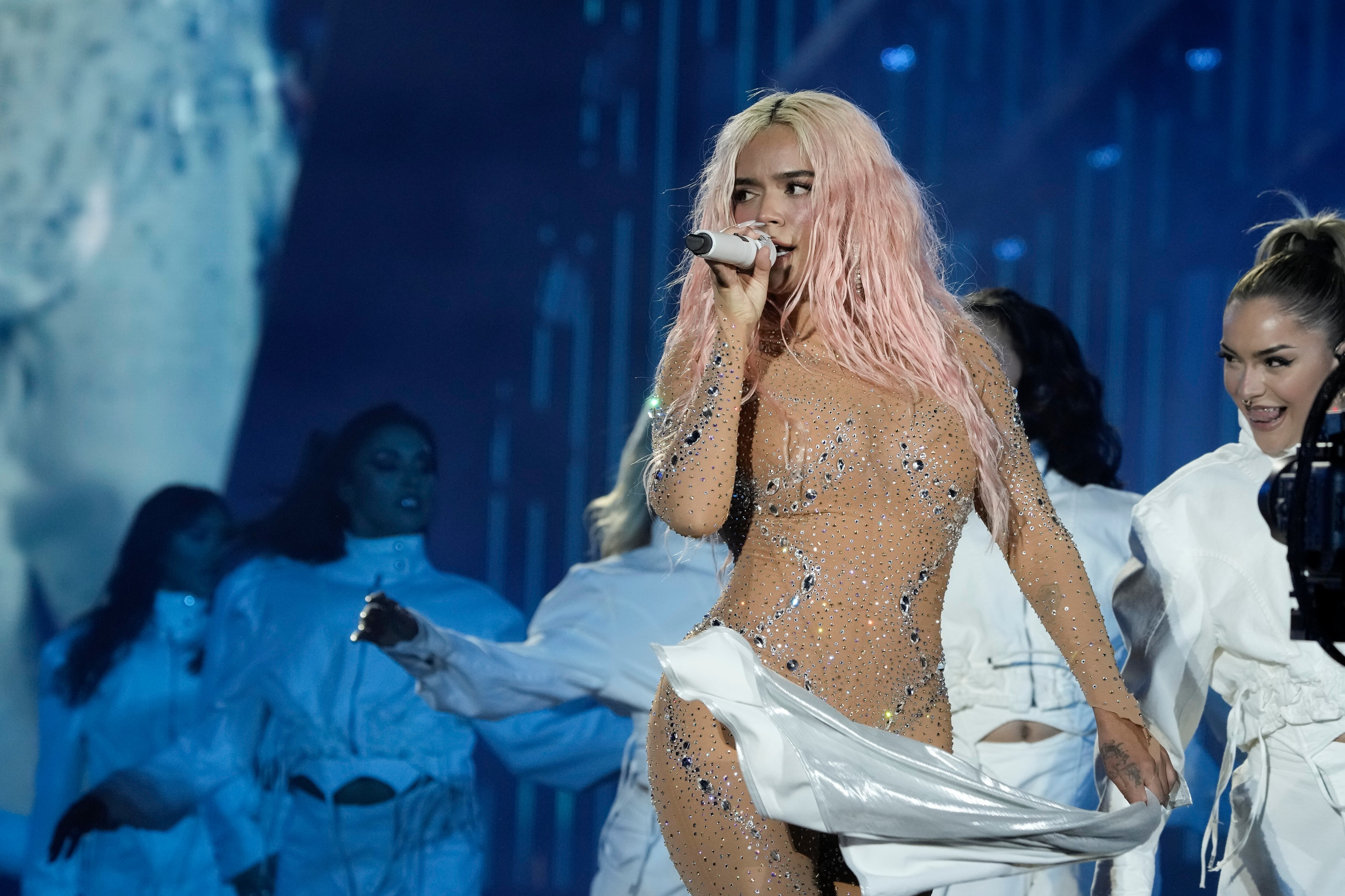 Luego de indicar que había recordado la letra de la canción, fue a iniciar el canto, pero desatinó con la pista, por lo que de nuevo, entre risas, coordinó y sacó adelante la canción. “Uno, dos, tres, te veo en las redes... ¿tampoco?, ¿todavía no?... Ya sé como dice, Ay, yo lo lamento, tu’ gana’ de volver murieron en el intento...”, mencionaba Karol G, mientras sus fans se reían con ella y luego compartían el particular momento en redes sociales donde la elogiaron por su personalidad, la manera en la que tomó el mal momento, las disculpas que dio y la fortaleza que tuvo para hacer de ese error el mejor momento de la noche.