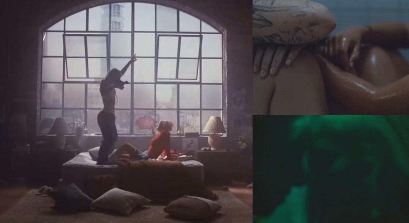 En el clip se ve a Karol G metida dentro de una tina y cae agua sobre ella, pero al frente se ve a una mujer acompañándola. En otras de las imágenes se les ve compartiendo en una cama mientras una graba a la otra.