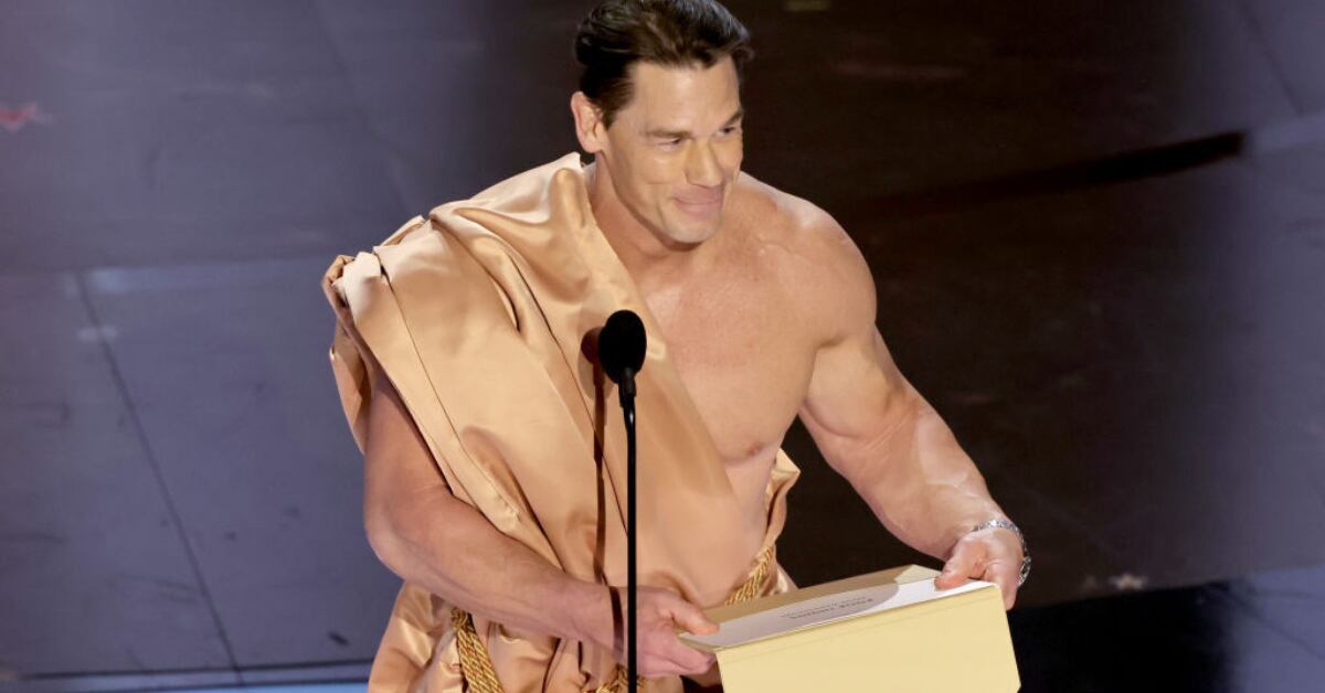 Sin duda, uno de los momentos más destacados de la premiación fue la aparición de John Cena, quien al momento de nombrar al ganador en la categoría de ‘Mejor Vestuario’ salió al escenario completamente desnudo, provocando una serie de reacciones en redes sociales por su sorpresiva hazaña.