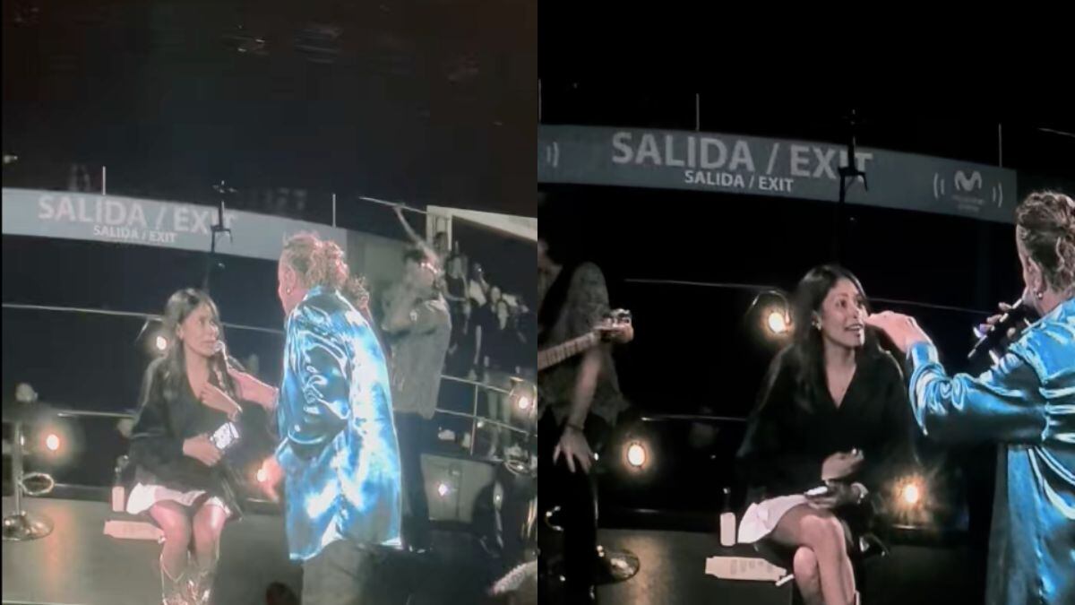 De la emoción, la periodista comenzó a grabar y a cantar junto con él. Luego de la canción, el cantante le preguntó su nombre, a quién ama más, si tenía novio y más.