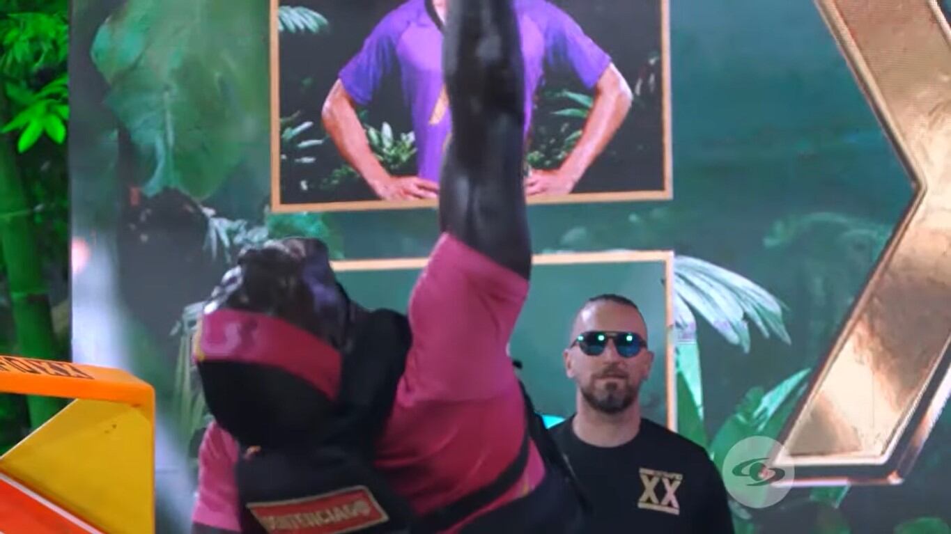 La prueba partía desde una plataforma en la que debían desplegar una escalera colgante para descender sobre ella, para seguidamente atravesar varios arrastres bajos y altos para ascender por un túnel y llegar a otra plataforma en la que había canecas llenas de aserrín y que además tenía un machete que tenían que extraer, descender con él y cortar un soga que sujetaba un baúl que debían arrastrar hasta el otro extremo de la pista y abrirlos para extraer tres balones que debían poner sobre las pestañas de una plataforma vertical.