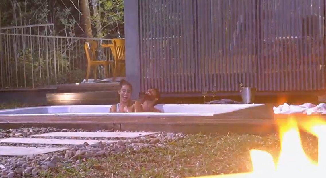 Luego de un pequeño percance en el que Renzo se cayó debido a que una tabla estaba rota, mientras en las casas se preguntaban qué estaría pasando entre ambos concursantes ya estos estaban en bata de baño listos para meterse en el jacuzzi y darle rienda suelta a su atracción.