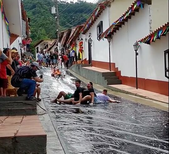 Habitantes en Santander convirtieron una calle en rodadero jabonoso