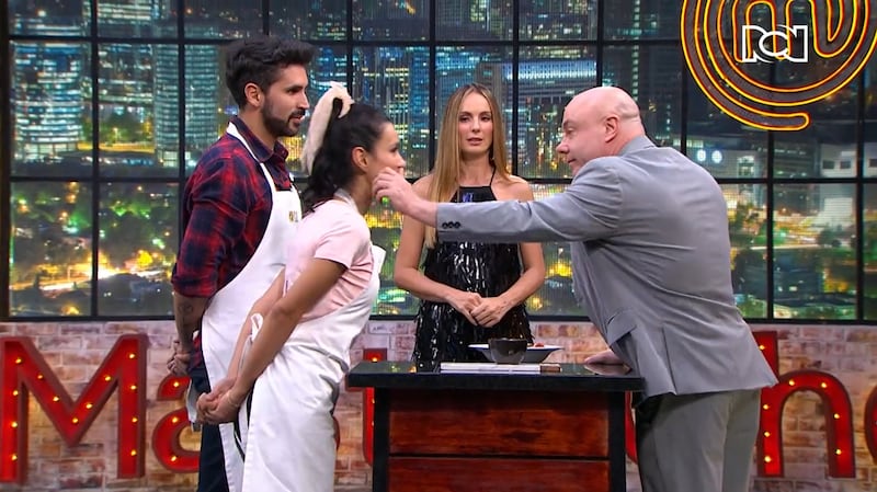 Los actores Paola Rey y Brian Moreno presentaron un “rey al lomo”, un plato que pese a lo sencillo cautivó por completo a Jorge Rauch quien no escatimó en probar varias veces y le pidió permiso a Claudia Bahamón para hacer lo que todos esperaban y no es más que el primer cachete de la temporada, gesto que el chef hace cuando un plato cumple con todas sus expectativas y lo sorprende.