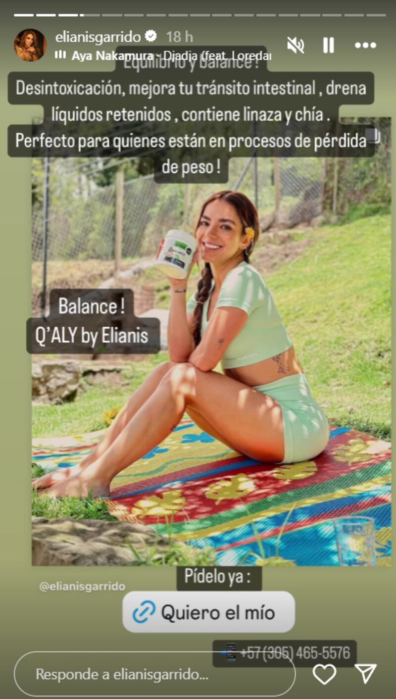 Pero las facetas de Garrido no se detienen allí, ya que también le ha puesto empeño a su vida de empresaria, con el lanzamiento de su línea de suplementos, que lleva por nombre ‘Q’ALY by Elianis’, los cuales están destinados a un público que estén en proceso de desintoxicación corporal y perdida de peso. Ella no solo promociona estos productos, también es una fiel consumidora y su estado físico es muestra de su efectividad.