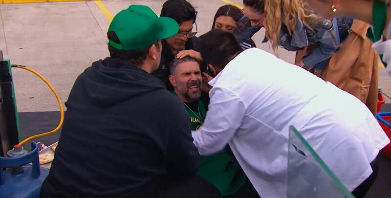 Sin embargo, el actor no se detuvo y llegó hasta el final del reto, pues cuando el chef Nicolás de Zubiría le dio la orden de levantar las manos por el vencimiento del tiempo Juan Pablo Llano se desvaneció ante Ilenia Antonini y Roberto Cano.