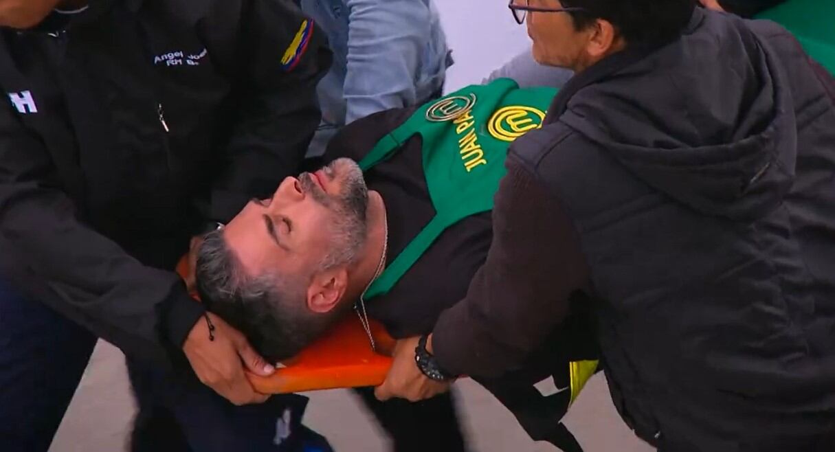 El desespero se apodero de la prueba y de inmediato, tras los gritos, el equipo tuvo que entrar para llevarse a Juan Pablo Llano en camilla para ser atendido dentro de una ambulancia.
