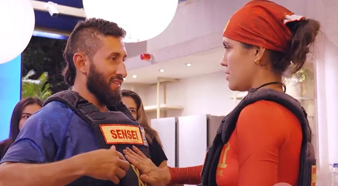Karoline llegó a la casa Tino e indicó que no le parecía chévere y que pondría los chalecos lo cual es obligación. De inmediato indicó que iría para Darlyn por lo que Sensei se ofreció a ponérselo y Karoline le contestó de manera irónica destacando un momento de tensión lo que llevó a Sensei a bromear.