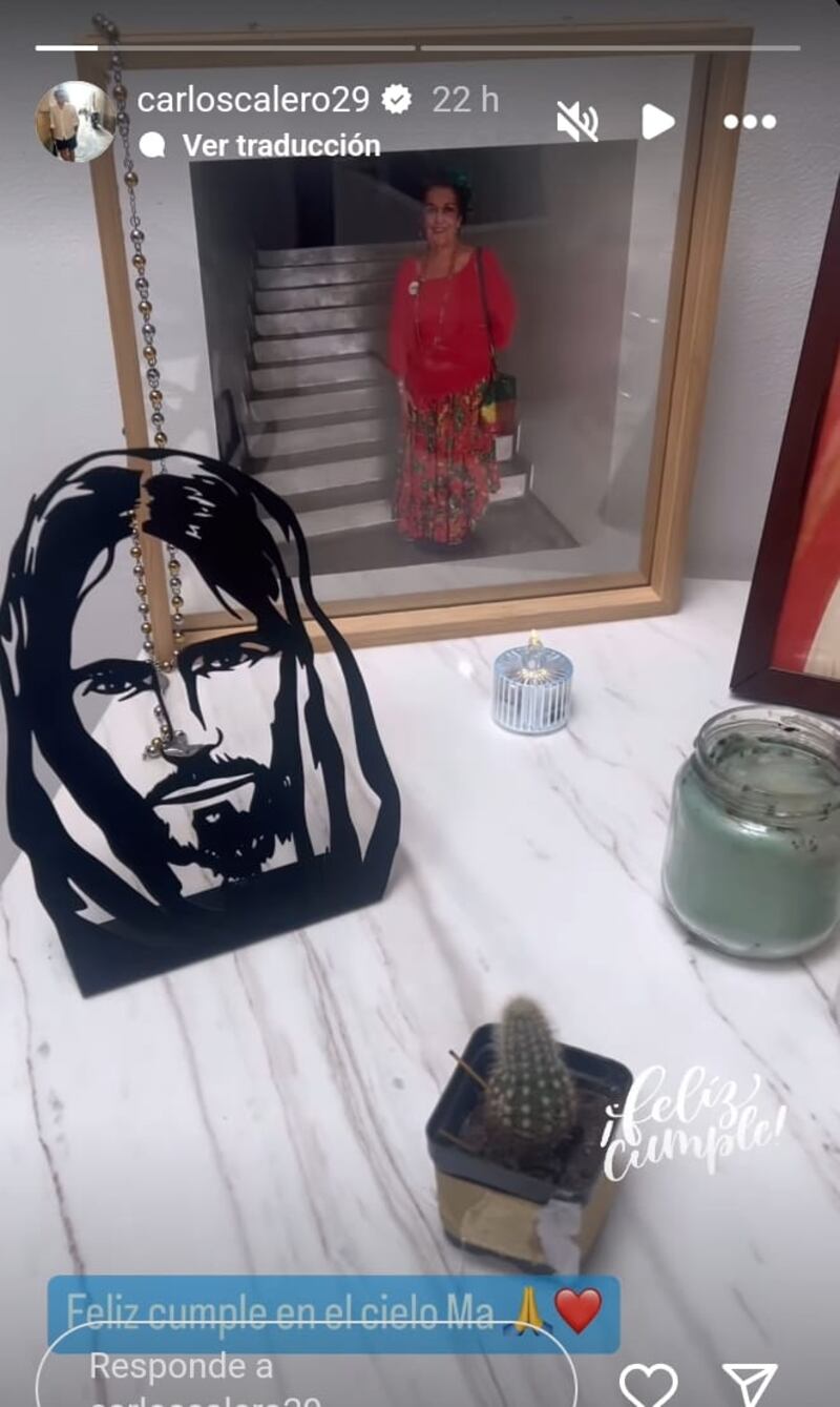 Sin duda, las mamá son de las personas más importantes en la vida de las personas, pero que en el caso de Carlos Calero la recuerdan con cariño. En las últimas historias de Instagram del presentador, subió una fotografía de una especie de altar con una foto de su madre, una imagen de Jesús y una veladora junto al mensaje “Feliz cumple en el cielo ma”, recordando com evidente nostalgia pero a su vez con mucho amor.