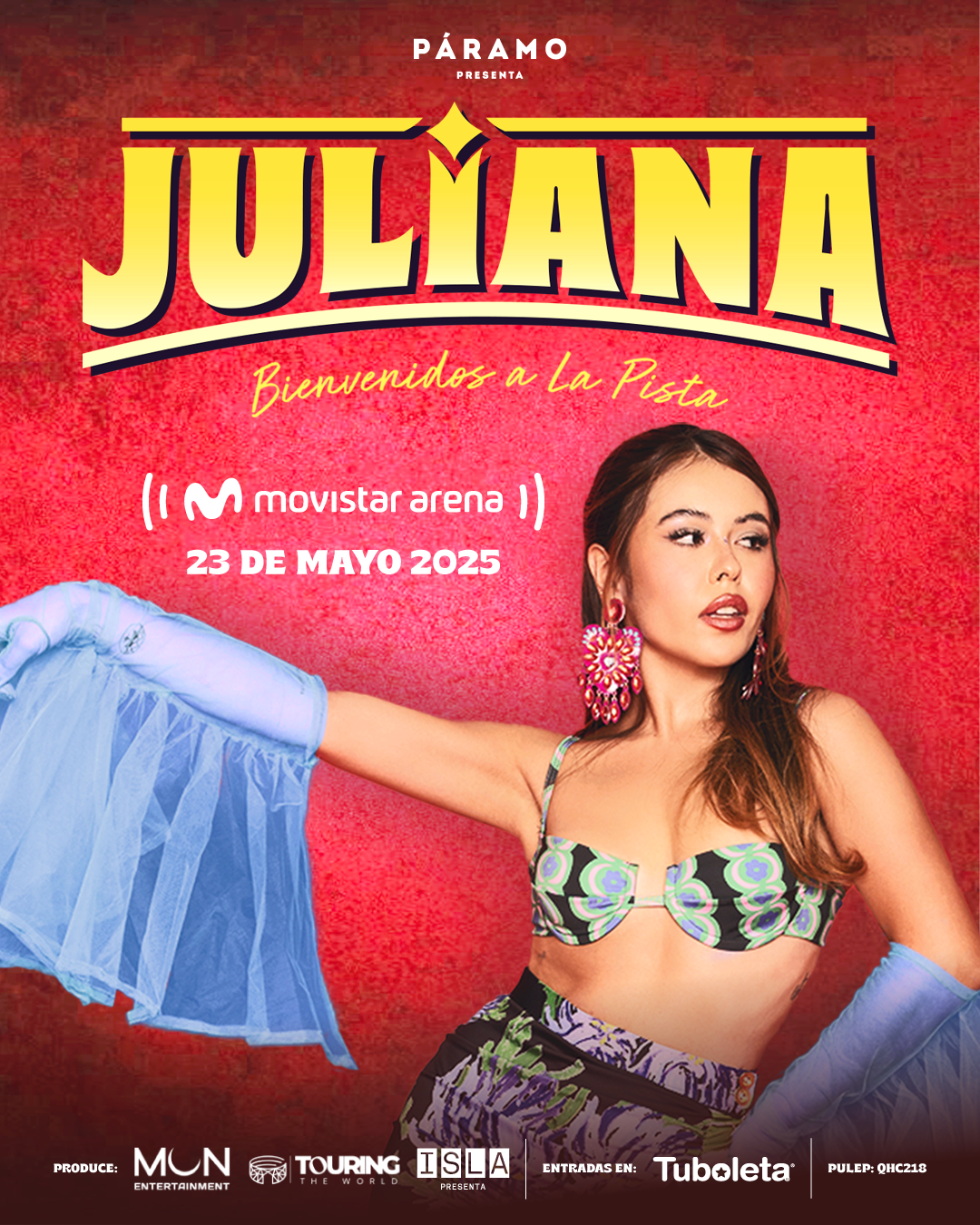 Juliana, la talentosa cantautora bogotana, ha cautivado al público con su voz única y su estilo musical fresco. Su ascenso meteórico en la industria musical la llevó a conquistar el mundo con su música, y como broche de oro a su talento, fue galardonada con un Latin Grammy a Mejor Nuevo Artista en el año 2021. Este reconocimiento internacional consolidó su posición como una de las artistas más prometedoras de su generación. Además, de que volvió a ser nominada en la categoría Mejor Álbum Vocal Pop Tradicional con su exitoso álbum “Mar Adentro”. Su música, una fusión de ritmos latinos con influencias contemporáneas, ha conectado con audiencias de todas las edades, convirtiéndola en un referente de la nueva ola de la música latina. En esta ocasión Juliana se prepara para regalarle a Bogotá un show inolvidable en el emblemático por primera vez en el Movistar Arena el próximo 23 de mayo del 2025