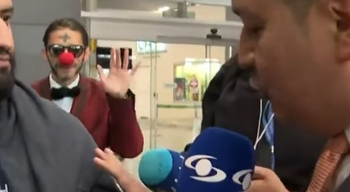 La inesperada y extraña aparición de ese personaje en plena entrevista de Noticias Caracol ha dejado todo tipo de comentarios jocoso y también a más de uno confundido, creyendo que era martes de ceniza. Todo muy extraño, pero muy propio de las curiosidades propias de Colombia.