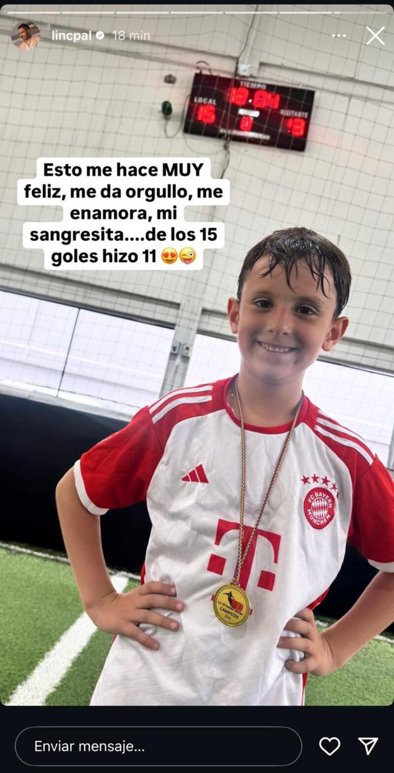 “Esto me hace muy feliz, me da orgullo. Me enamora, mi sangrecita de los 15 goles, hizo 11″, agregó Lincoln Palomeque, añadiendo además una imagen del menor, demostrando así que fue un partido bastante complejo, pero el triunfo y su sonrisa fueron lo más importante.