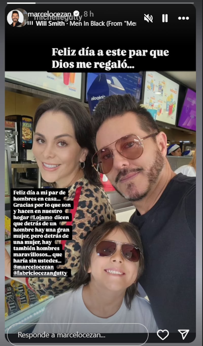 “Feliz día a mi par de hombres en casa. Gracias por lo que son y hacen en nuestro hogar, los amo. Dicen que detrás de un hombre hay una gran mujer, pero detrás de una mujer hay también hombres maravillosos. Qué haría de mi vida sin ustedes”, se lee en la historia.