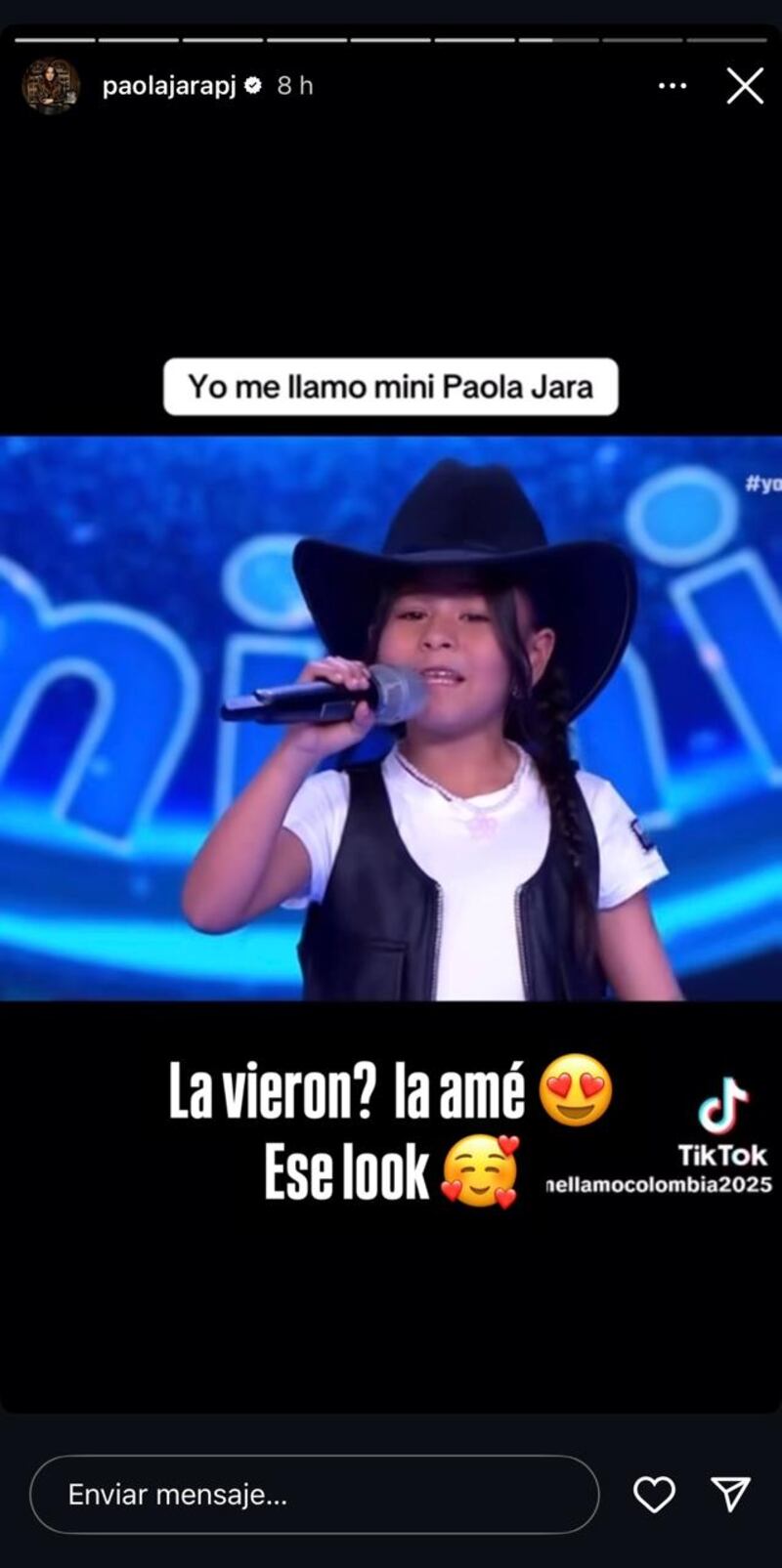Durante la transmisión de la noche del martes 15 de abril, una de las imitadoras mini que llegó al escenario, fue, precisamente, ’Yo me llamo Mini’ Paola Jara, quien interpretó la canción ‘Pedazo de carne’, “¿La vieron? La amé, ese look", fueron las declaraciones que añadió Paola, añadiendo el respectivo video de la presentación de la pequeña en Caracol.
