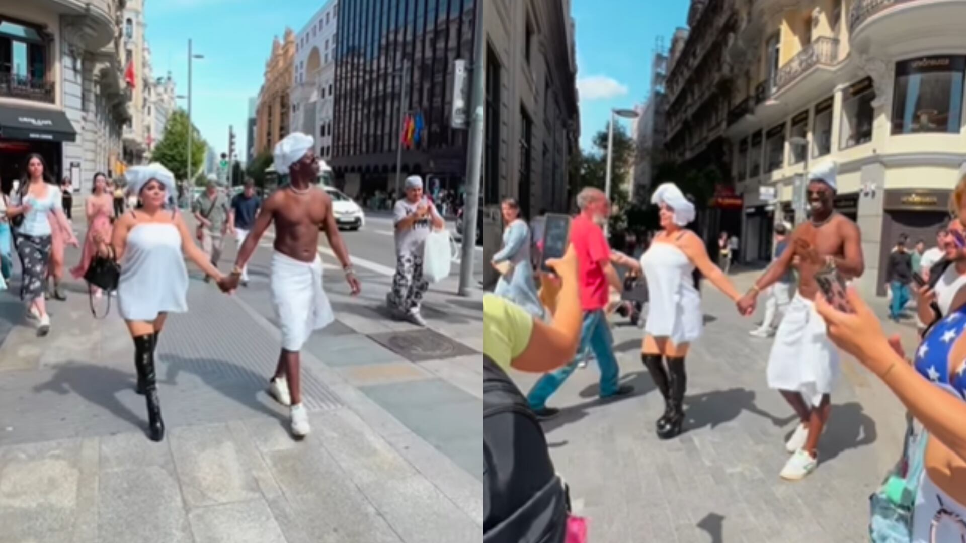Hace un día, la pareja, que sube diferente contenido a sus redes sociales, compartió un video donde se les ve a ambos en toalla paseando por las calles de Madrid, España. Esto hizo que se robaran toda la atención y fueran reconocidos por uno que otro compatriota que se encuentra allá, pero también dio pie para que miles de personas los criticaran por la imagen que estaban dejando de Colombia en el país europeo.