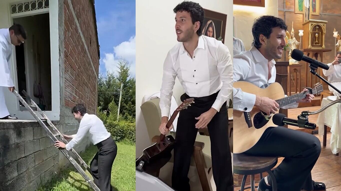 “Me llegó un mensaje con una historia de amor y esto fue lo que pasó ✨ 👰🏼♀️ 🤵🏻♂️ 🪽“, escribió Sebastián Yatra al pie del video en el que se le ve entrar por la parte trasera de una capilla para luego aparecer el altar en la boda de Ale y Juan Felipe.