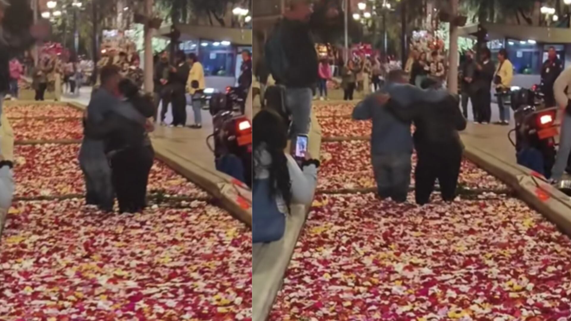 Hace pocos días la Alcaldía Mayor de Bogotá, realizó una intervención artística en las fuentes del Eje Ambiental en el Centro de la ciudad, cubriendo esta fuente hídrica con miles de flores. Este atractivo turístico fue aprovechado por una pareja para prometerse amor eterno, escena que se viralizó rápidamente en la red TikTok; plataforma en la que también criticaron a los ‘tortolitos’.