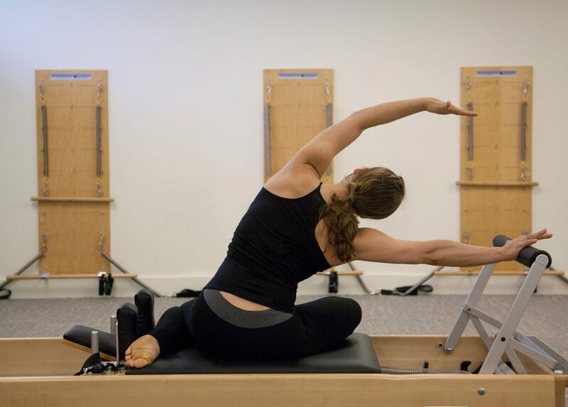 El Pilates es un sistema de entrenamiento creado por Joseph H. Pilates que cuenta con más de 500 ejercicios diferentes y puede hacerse con barras, pesas, pelotas, ligas y máquinas especiales.