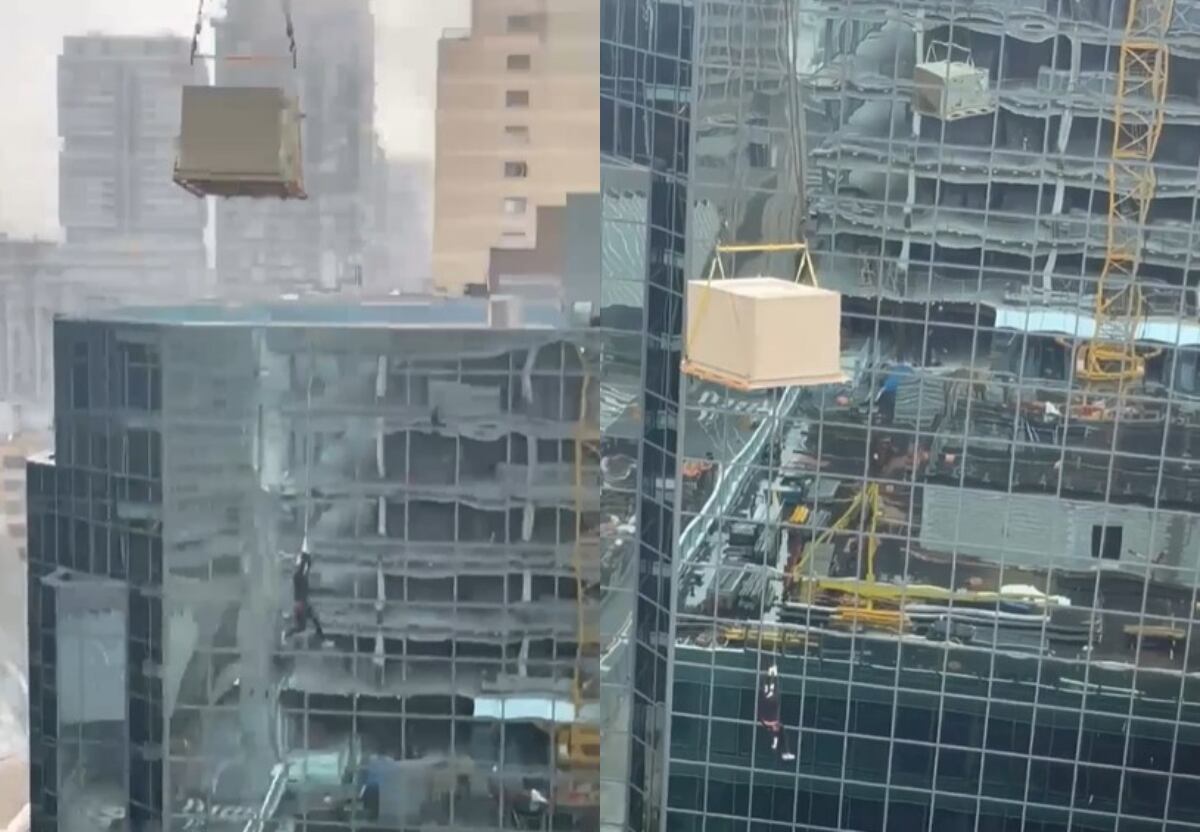 El Ministerio del Trabajo en Ontario se encuentra investigando el accidente que sufrió un trabajador, luego que un video captara que el hombre quedó colgando de una grúa a varios metros de altura en la ciudad canadiense de Toronto, registro que luego se viralizó a través de las redes sociales.