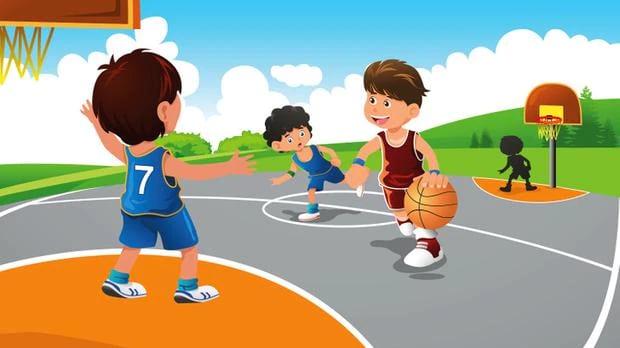 En la ilustración tenemos a cuatro niños, pero tres de ellos están en una jugada, mientras que el otro está al fondo.