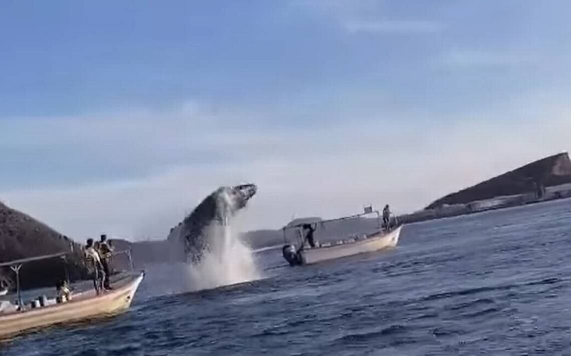 En el clip, se aprecia a una ballena jorobada que emergió el pasado fin de semana, para chocar y abalanzarse contra la proa de una pequeña embarcación.
