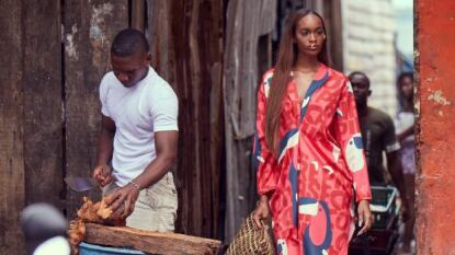 Es por eso que con caftanes, con combinaciones como el cuero (trenzado, para reflejar cómo se trenza el pelo afro), con blazers deconstruidos, ya sello de Guarnizo, entre otras piezas, se imprimen las simbologías de la ciudad. Estas van desde los carteles que se ven en los negocios de Buenaventura, sus barcos, su puerto, sus edificios, hasta la fauna pródiga del Pacífico, un territorio a veces tan inconexo dentro del relato nacional y que se ha contado desde la exotización, generalmente.