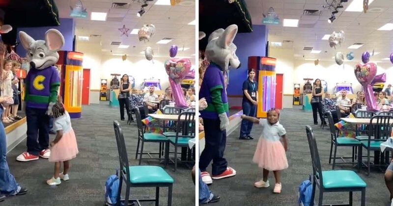 Niña de 2 años es ignorada por mascota de Chuck E Cheese. Foto: redes sociales.