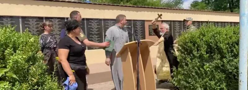Así quedó demostrado en el funeral de un soldado, cuando un sacerdote ruso (Mykhailo Vasylyuk) se abalanzó contra el cura ucraniano (Anatoliy Dudko) que oficiaba la misa, con todo y crucifijo en mano, después de que este último acusara al presidente ruso, Vladimir Putin, de haber desatado la guerra en Ucrania.