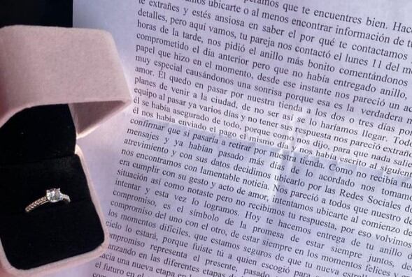 De acuerdo al medio, el hecho fue dado a conocer por una prima del novio, quien compartió en Twitter una foto del anillo además de la misiva de la joyería.