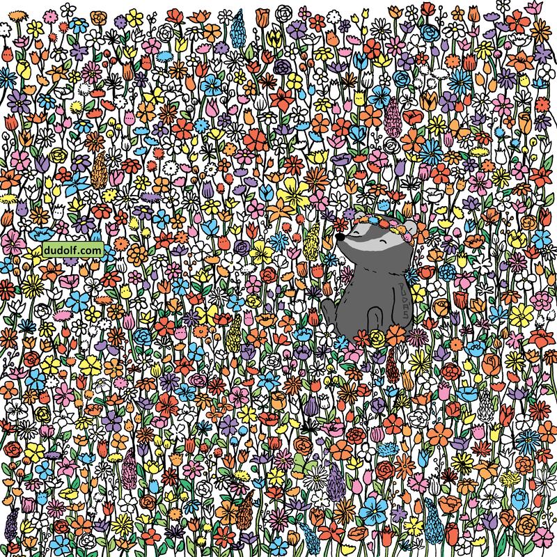 Por otro lado están las formas: el artista de esta pieza logro darle un estilo bastante único a las flores, de modo que sus pétalos fácilmente puedan mimetizarse con las alas de las mariposas escondidas en el jardín. Y como detalle final, pero no por eso menos importante, un pequeño animal disfruta del paisaje primaveral para darle un toque adorable a la imagen.