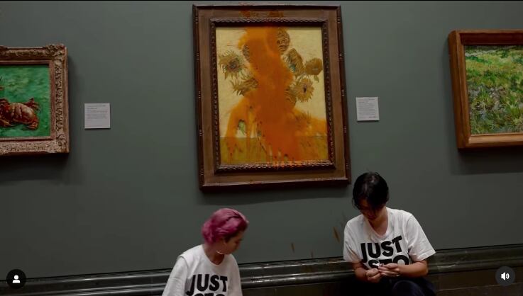 En redes sociales, Just Stop Oil, indicó que la creatividad y brillantez humana se exhiben en una galería pero el patrimonio (naturaleza) está siendo destruido por la falta de acción del Gobierno. Su protesta nace por las 100 licencias concedidas para la explotación de gas y petróleo.