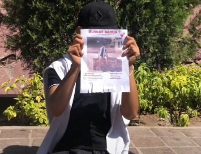 “¿Buscas pareja?” Yo también”, dice el afiche con una foto de él. Además describe algunas de sus cualidades.