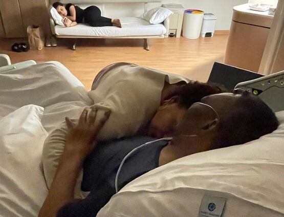 Kelly mostró una foto semirecostada sobre el pecho de su padre en la camilla del hospital. Se observa a Pelé con oxígeno, poniendo su brazo sobre el de su hija.